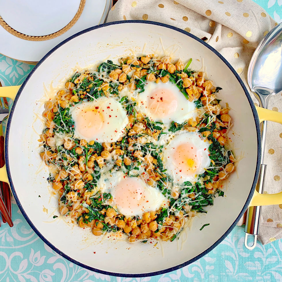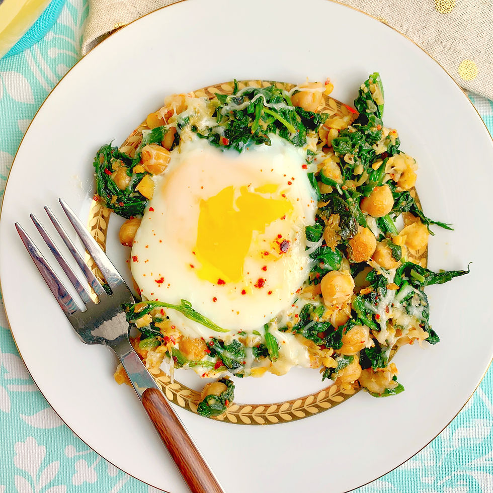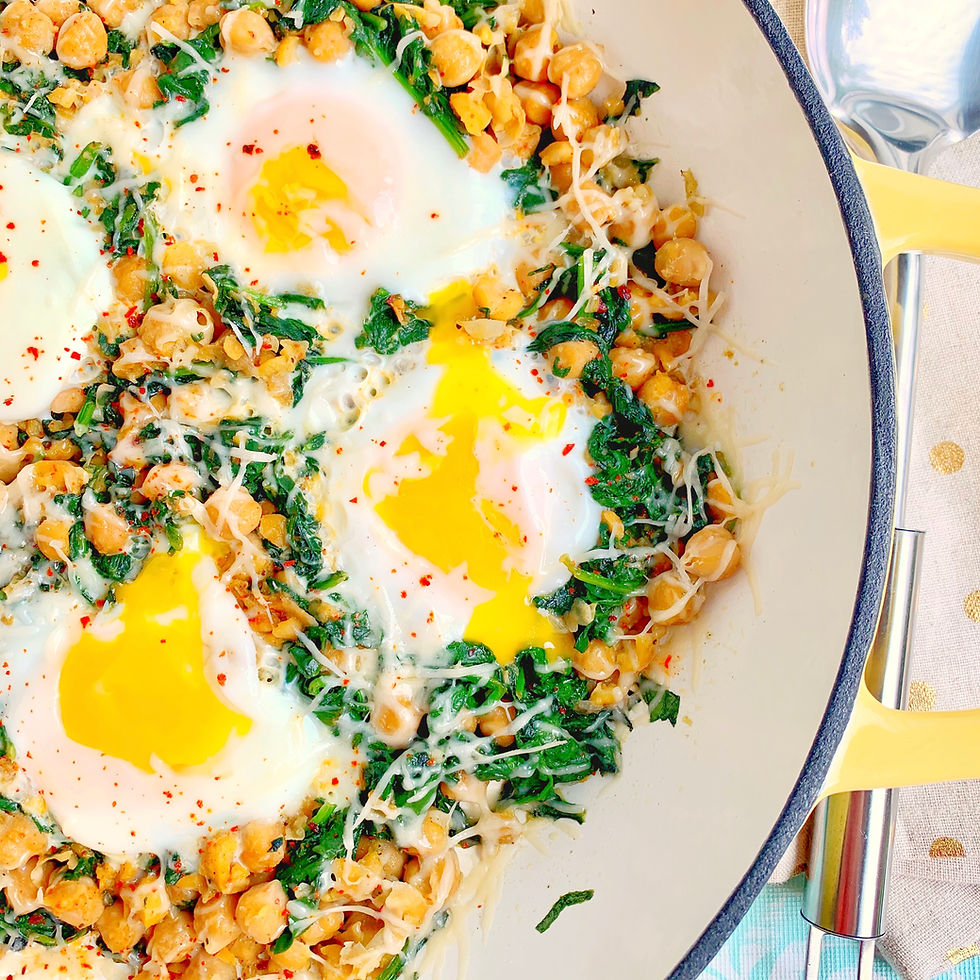 So today, we’re making Spinach, Chickpea, and Egg Skillet!
